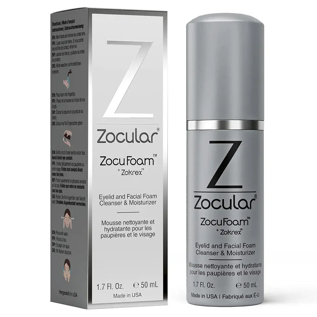 Dispense one pump of ZocuFoam onto your clean index and middle fingers. Spread across the end of the fingers using the other hand. Close the eyelids and massage/scrub the foam across the lash line using a gentle circular motion. After 10-15 seconds rinse with water.