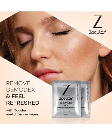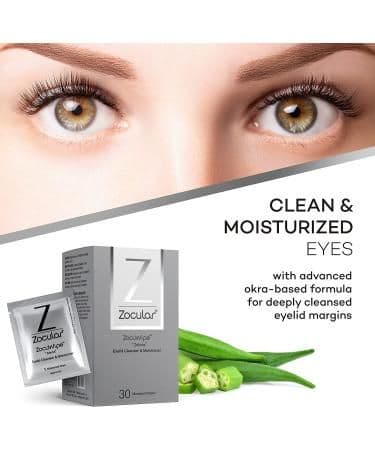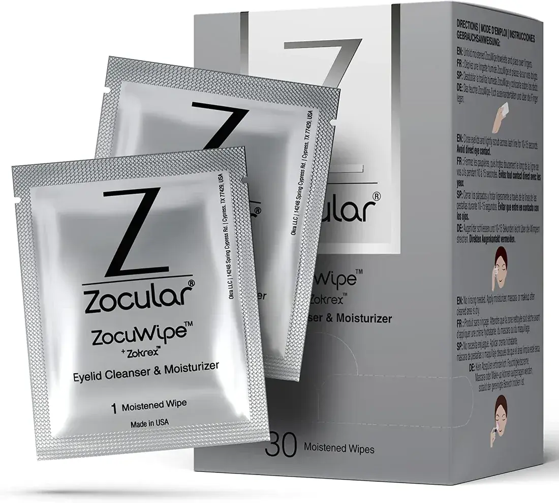 Zocular ZocuWipe eyelid cleansing wipes gently cleanse your lashes and eyelids of oil, makeup, debris and flaky skin that can cause the eyes to feel dry and irritated.